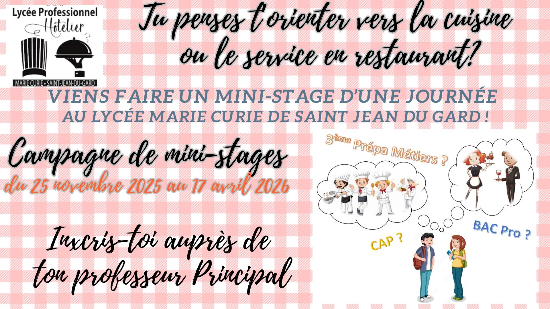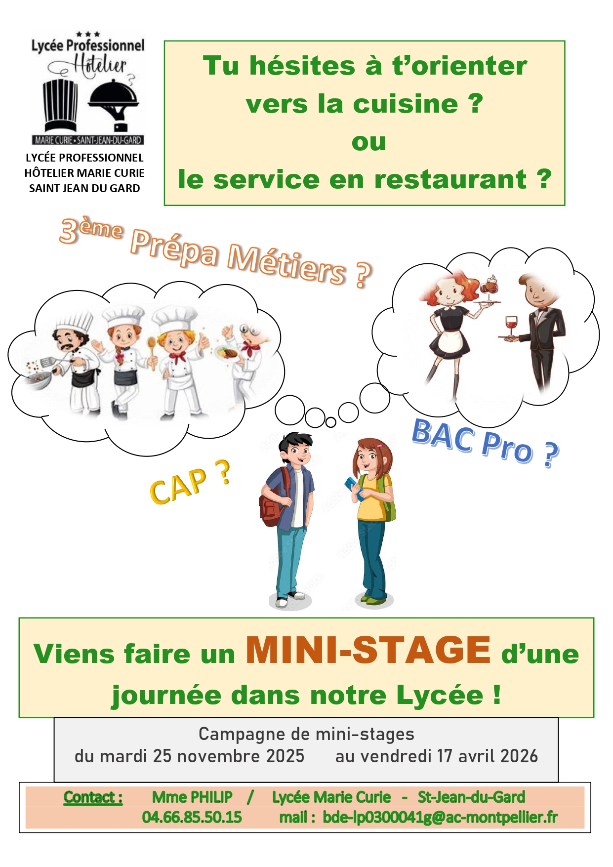 mini-stages de découverte des formations du Lycée Marie Curie de Saint-Jean-du-Gard [2025-26]