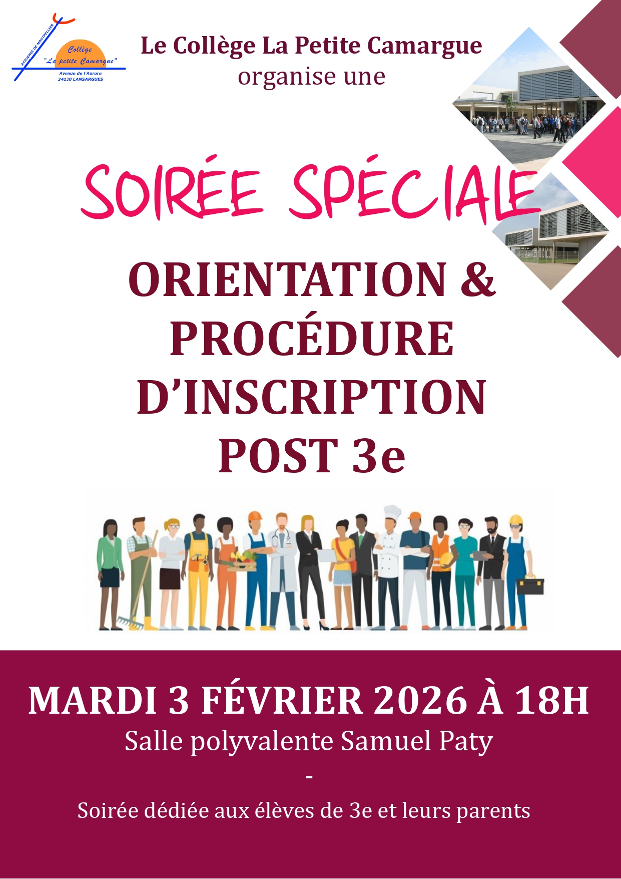 Soirée SPÉCIALE ORIENTATION & INSCRIPTION POST 3e au collège